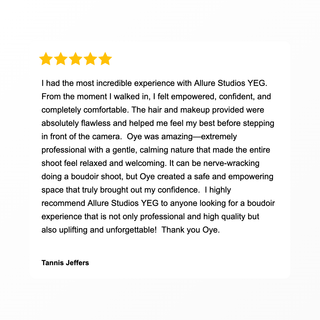 Allure by Potterclay Studios is inviting a handful of women in Edmonton & surrounding cities to take part in a truly unique Boudoir Portrait Experience at our Edmonton studio. This is more than just beautiful photographs. You’ll enjoy professional guidance and a one-of-a-kind boudoir experience with an artistic, elegant twist — thoughtfully designed to help you unleash your confidence, feel free, and see yourself as absolutely beautiful.