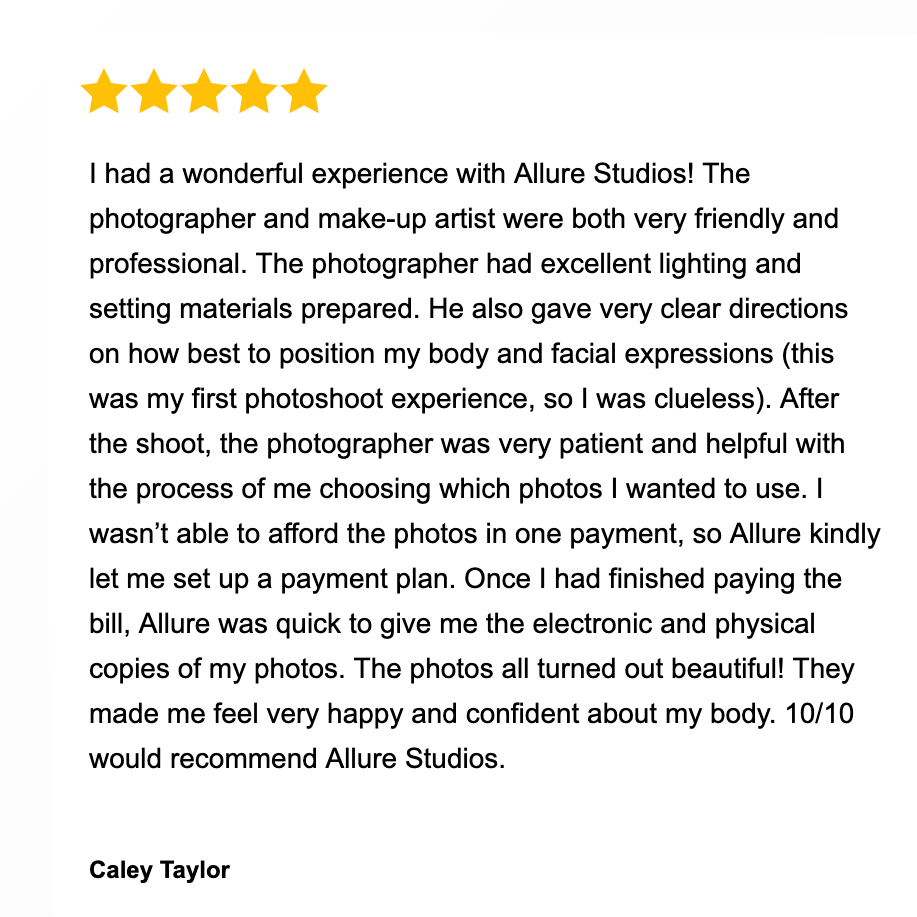 Boudoir Portrait Collections start at $1500. Everyone spends on their portrait collections (artworks) based on their budget and preferences. Flexible payment options available up to 12months.