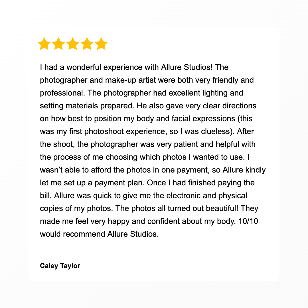 As part of our booking process (if you are selected), a $250 retainer is required to secure your date on our calendar. This retainer is completely put towards your portrait order. This deposit simply reserves your creative team (your photographer, hair & makeup artist, and studio time).